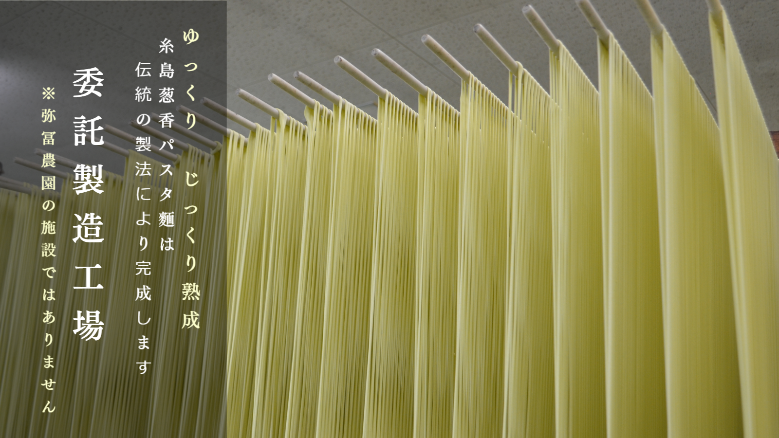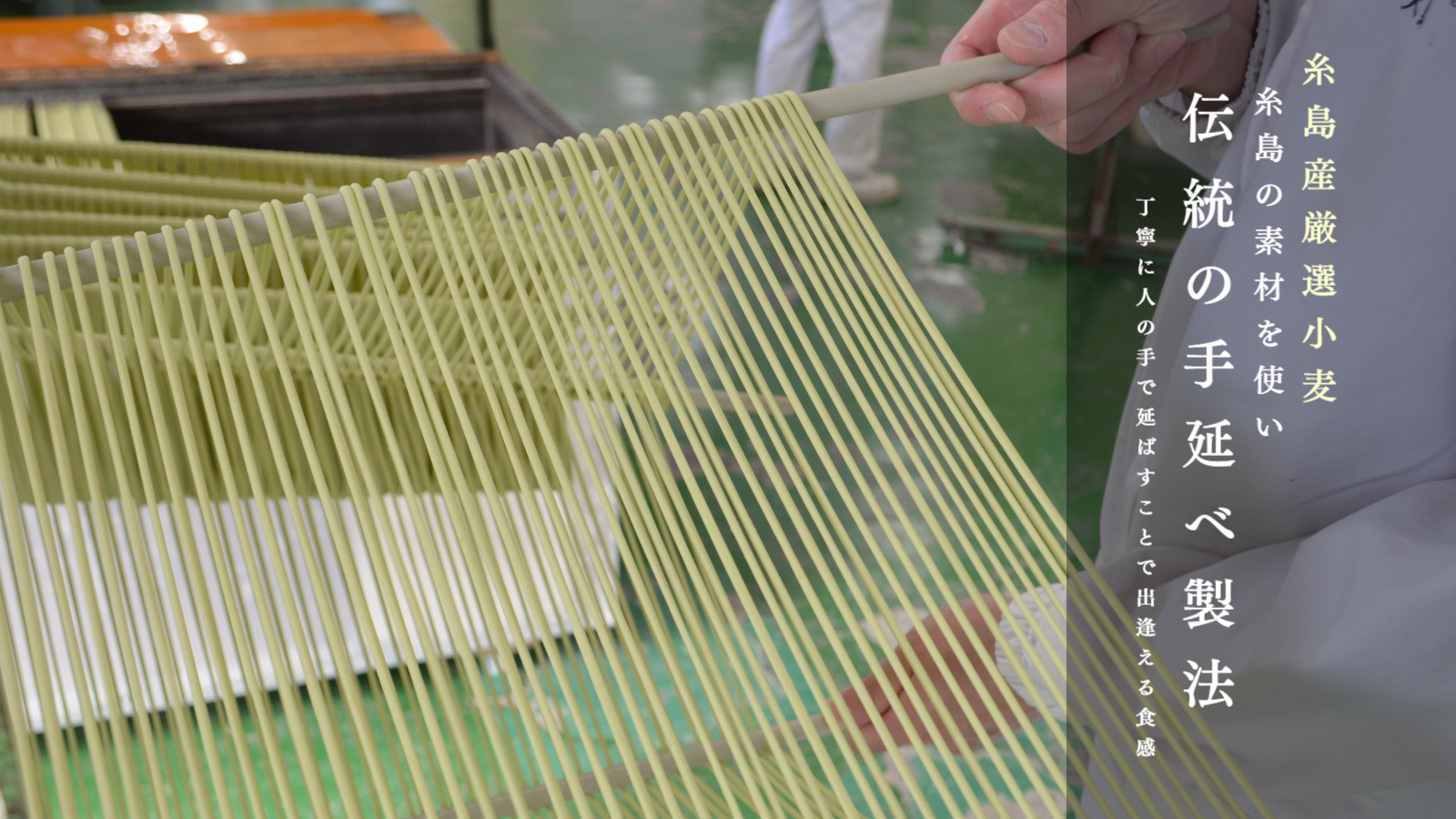 雷山の麓で育った糸島葉ねぎと糸島産厳選小麦は、伝統の手延べ製法によって美味しいパスタ麺になりました。